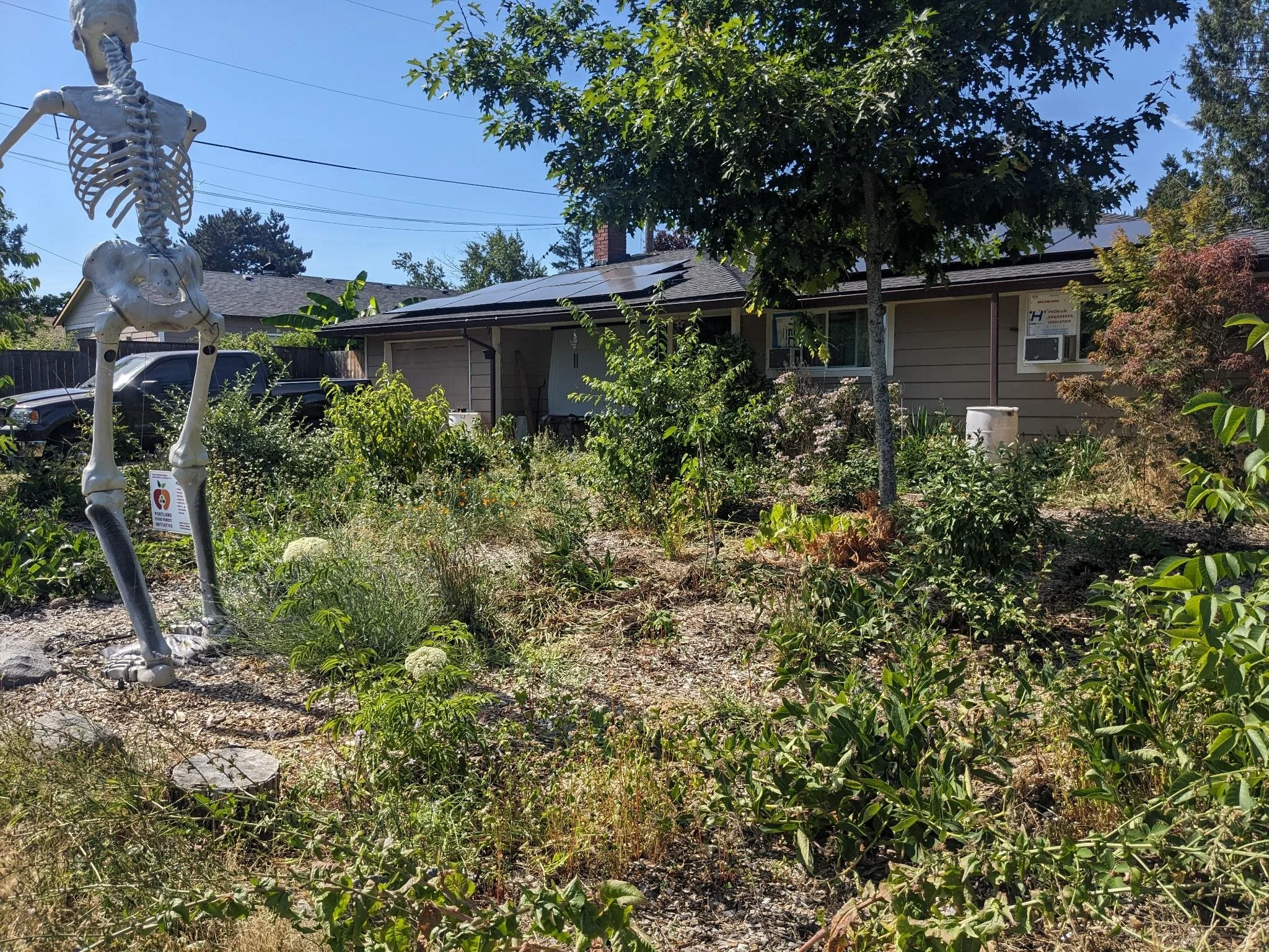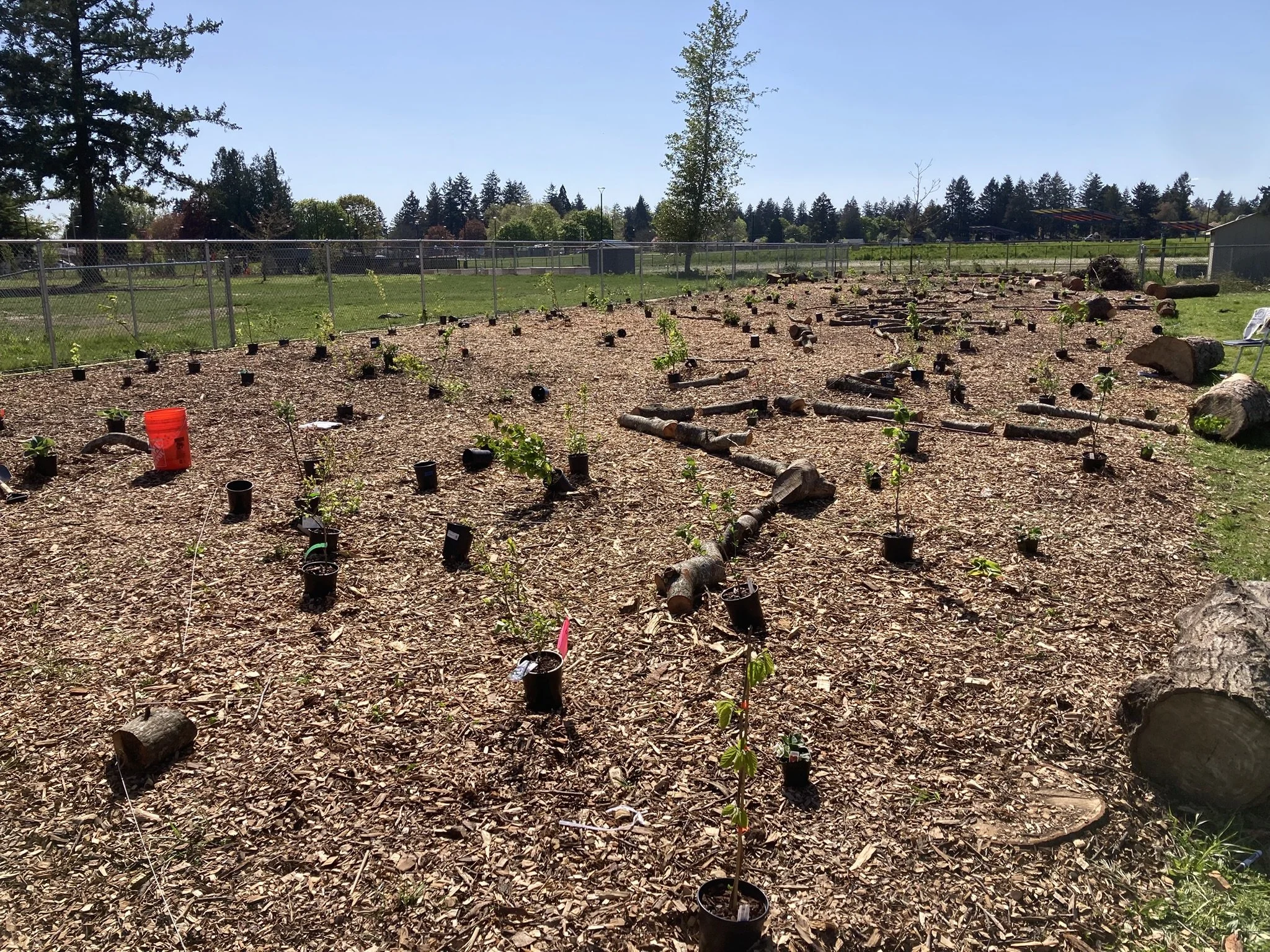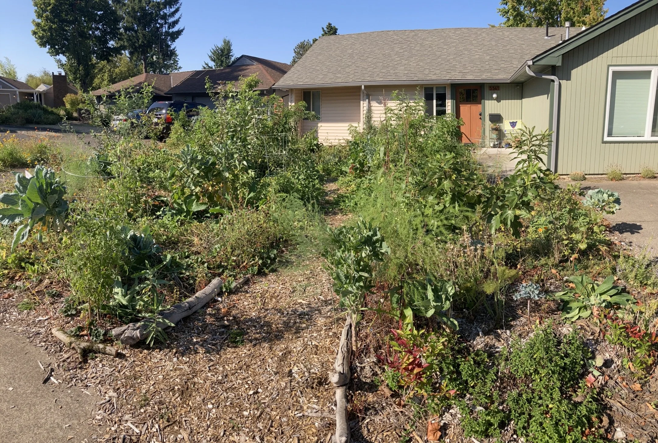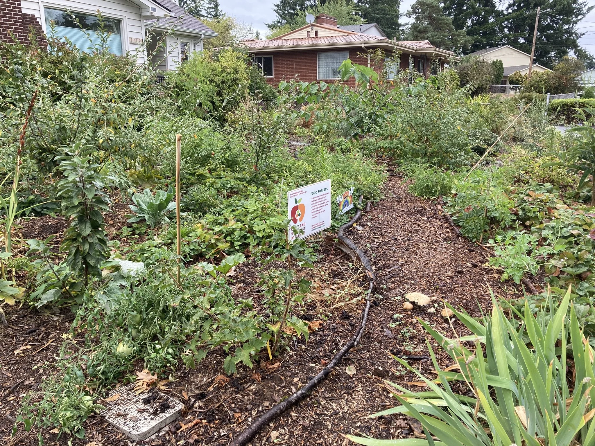 In these first three years of our existence we’ve established 11 food forest sites in Portland, most on privately-owned donated land for 5-year periods with the exception of the Los Jardines and Oliver Middle School food forests. This combination of front yards, back yards, apartment complex courtyard, schoolyard and farm land allows us to plant demonstration sites, conduct plant research, and propagate nut and fruit-bearing trees and shrubs without having to navigate city contracts or entanglements.