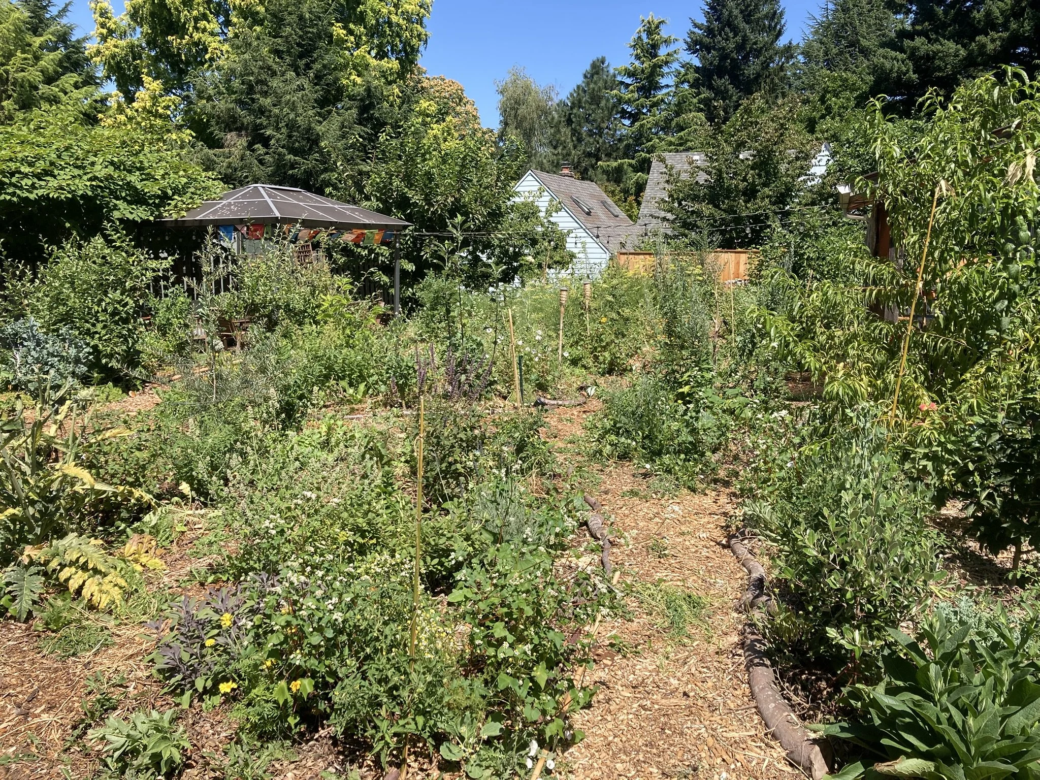 This is the second of four food forest demonstration sites in Cully, NE Portland. This design uses principles of syntropic agroforestry and the forest garden. Planting began in April 2024.